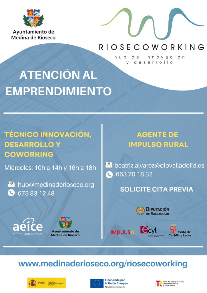 RioseCoworking se concibe también como un punto de encuentro, un HUB para la innovación y el desarrollo de Medina de Rioseco y su comarca a través del impulso de iniciativas y proyectos público-privados que crearán en torno a estas nuevas instalaciones un ecosistema colaborativo que dinamice la actividad económica de la zona. Para ello, el Ayuntamiento de Medina de Rioseco cuenta con el apoyo técnico de AEICE, Clúster de Habitat Eficiente, que es una Agrupación Empresarial Innovadora para el desarrollo de actuaciones que promuevan la competitividad y la transformación en el sector hábitat mediante acciones estratégicas innovadoras basadas en la colaboración y excelencia empresarial.